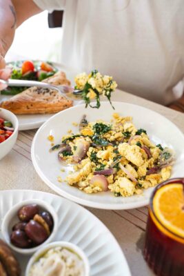 טופו אורגני רך מקושקש בשמן זית עם בצל ומלח הודי