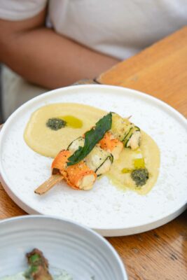 נתח צרוב במיסו חרובים, פירה וקונפי כרישה
